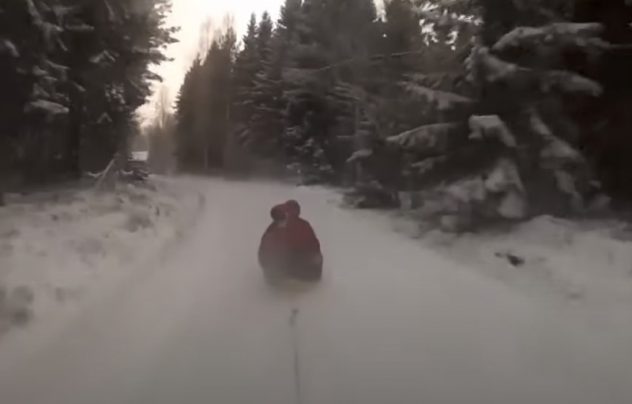 Autoilija vetää perässä pulkkaa – kyydissä olijat huijaavat kuolemaa