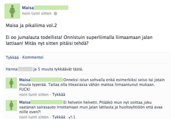Feissarimokat: Naisella ongelmia pikaliiman kanssa – ”liimasin vahingossa jalkani lattiaan”