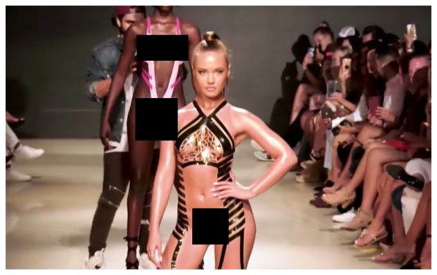 Miamissa järjestetty muotinäytös veti puoleensa suuren määrän ihmisiä. Huhujen mukaan naiset oltiin puettu ilmastointiteippiin, jonka seurauksena vain kriittisimmät paikat peittyivät. Tätä vartalonmyötäisempää uimapukua on käytännössä mahdoton hankkia ellei halua kulkea alasti. Alla esimerkki, miltä teipillä varustetut naiset näyttävät: