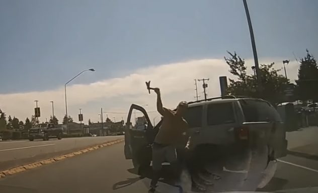 Auton kojelautakameralle tallentunut video on järkyttänyt ihmisiä sosiaalisessa mediassa. Liikenteessä alkaneet erimielisyydet johtivat siihen, että raivostunut mies pysäytti auton toisen auton eteen ja heitti hakun tämän tuulilasiin. Tämän jälkeen sekopää kaasutti pois paikan päältä.