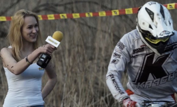 Enduro-kilpailuissa roiskuu muta, kun tehokkaat motocross-pyörät kaahaavat hiekkaisessa ja multaisessa maastossa. Paikalla olevat reportterit saavatkin olla varovaisia etteivät he saa omaa osaansa kilpailusta. Kaunis ja nuori nainen oli päässyt haastattelemaan paikalla ollutta kilpailijaa. Haastattelu sujuikin hyvissä merkeissä, kunnes kilpailija lähti pois jatkamaan kohti seuraavaa etappia. Mies ei ilmeisesti tajunnut, että hänen kaasutuksellaan tulisi olemaan ikävät seuraukset.