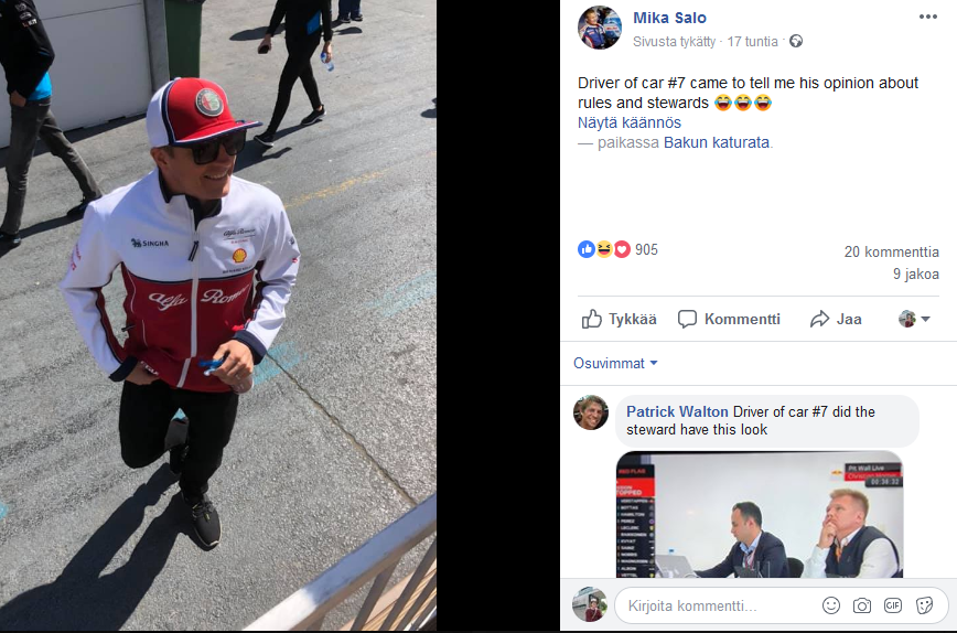 Mika Salo on nykyisin myös F1-tuomarina, jonka erikoisalana on arvioida kuskin näkökulmasta kisan tapahtumia. Näin myös eilisessä Bakun osakilpailussa.