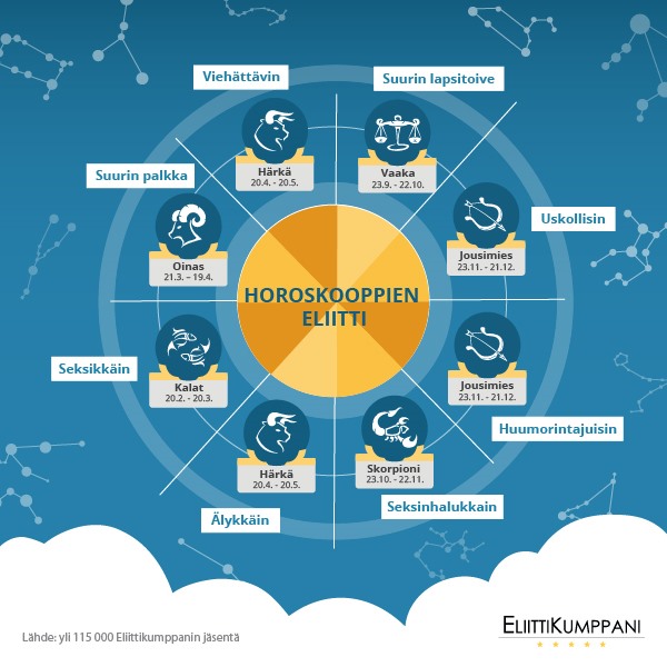 Eliittikumppanit teetti tutkimuksen yli 115 000 suomalaisen sinkun ominaisuuksista – jakaen ne horoskooppimerkeittäin.