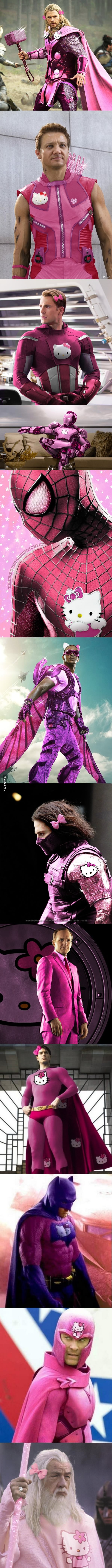 Photoshoppaajat muokkasivat supersankareille pinkit Hello Kitty-asut – Katso kuvat!