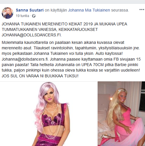 Sivu täynnä Johanna Tukiaisen ylistystä – kaapattiinko Sanna Suutarin Facebook-tili?