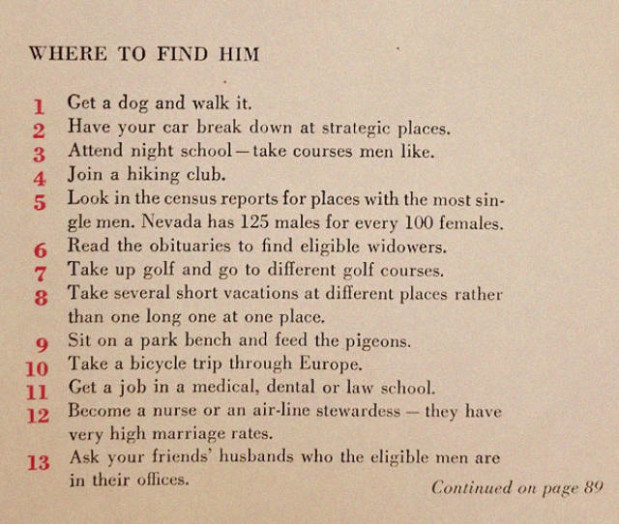 129 niksiä aviomiehen hankkimiseen: 50-luvulta peräisin oleva ohje on koomista luettavaa