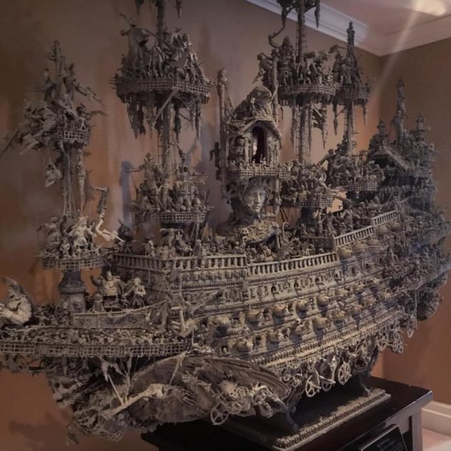 Yksi hänen upeimmista teoksistaan kantaa nimeä ”Leaviathan” – kyseessä on maailmanlopun arkki, joka on 2,4 metriä korkea ja 2,3 metriä pitkä. Arkki on sisältää satoja erikoisen näköisiä otuksia, jotka kuuluvat aluksen ”miehistöön.” Jason Stieva on tehnyt lukuisia puuveistoksia, mutta Leaviathan oli hänen mukaansa kaikista haastavin projekti. Minun kaltaisen taviksen on edes vaikea kuvitella, kuinka tällainen projekti on mahdollinen. Katso alapuolelta kuva tästä uskomattomasta teoksesta.