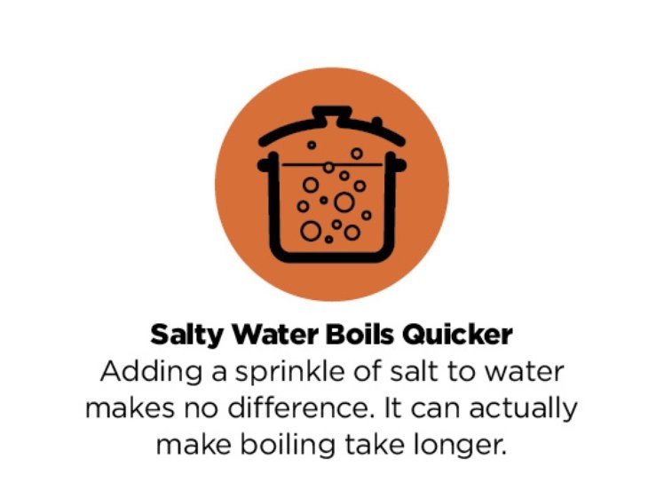 1. Suolan lisääminen saa veden kiehumaan nopeammin.