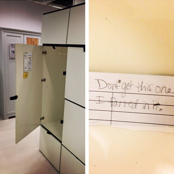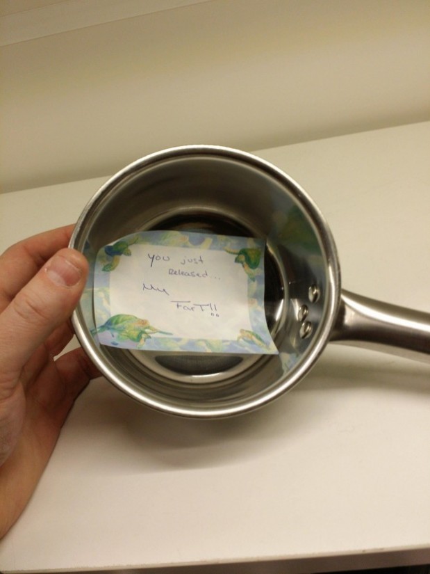 4. Tämä kattilaan jätetty viesti, jossa todetaan, että olet juuri vapauttanut tuntemattoman henkilön pierun.
