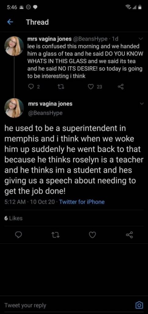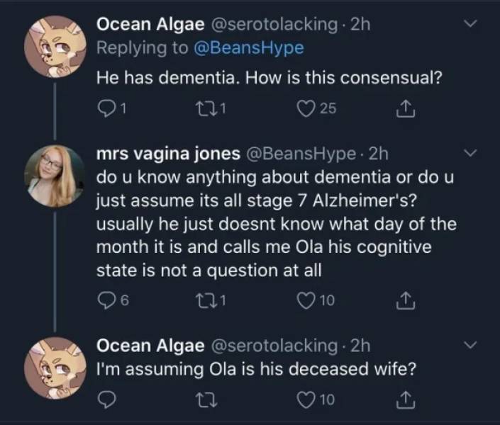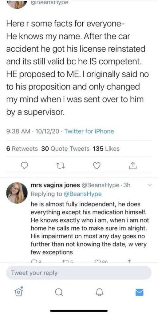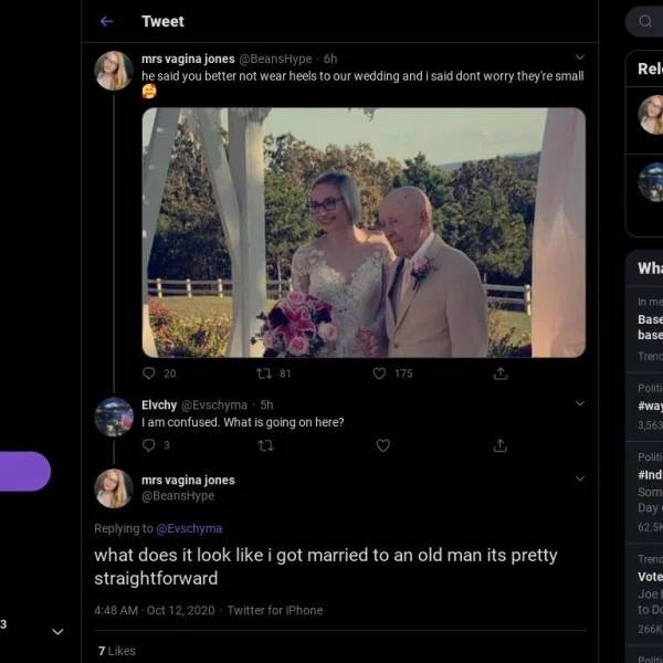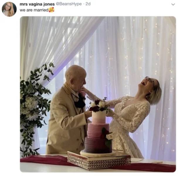 19-vuotias Vagina Jones meni hiljattain naimisiin 70 vuotta itseään vanhemman miehen kanssa. Internet-käyttäjien tekemän selvityksen mukaan miehellä on dementia, sillä hän kutsuu Vagina Jonesia edesmenneen vaimonsa nimellä.