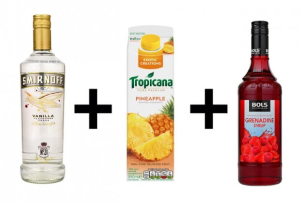 Vanilja vodka + ananasmehu + grenadiini