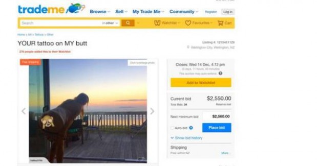 Uudesta-Seelannista kotoisin oleva Bailey Price haluaa, että hänen peppuunsa tatuoidaan ihan mitä vain. Nainen pyytää tästä tempauksesta rahaa huutokaupan avulla ja tällä hetkellä hinta on noussut jo 2550 dollariin.