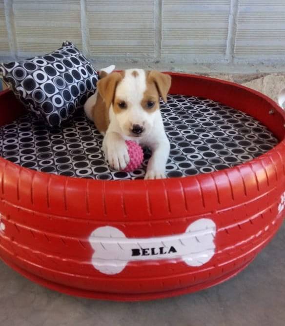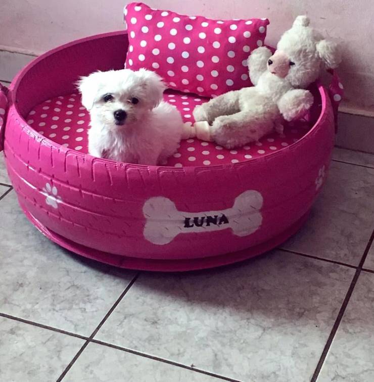 Silva kerää vapaa-ajallaan auton renkaita ja muuttaa ne ympäristöystävällisiksi eläimille tarkoitetuiksi sängyiksi.