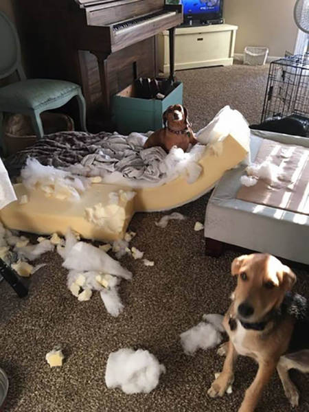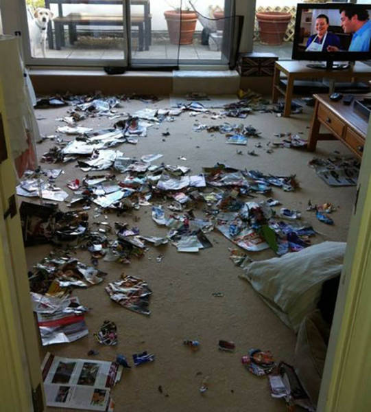 Näissä kuvissa ihmiset ovat saaneet kokea pienen tai hieman suuremman yllätyksen, kun he ovat palanneet kotiin. Nämä kotieläimet ovat nimittäin päättäneet sisustaa huoneita uuteen uskoon.1.