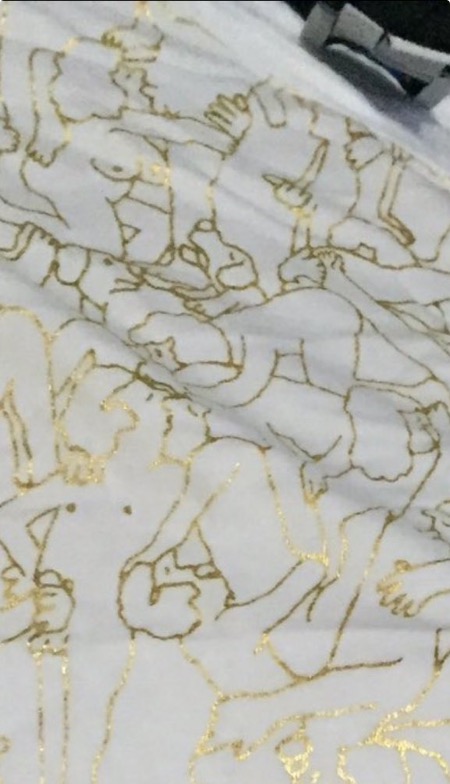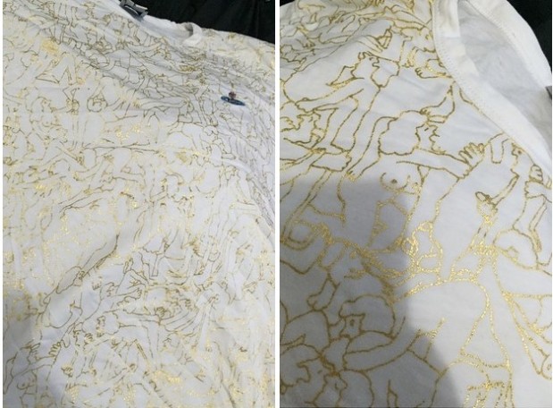 Kultakuviot eivät kuitenkaan olleet täysin viattomia. Itse asiassa paita kuvasti yhtä suurta orgiaa.