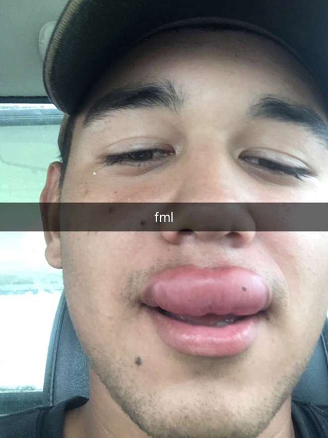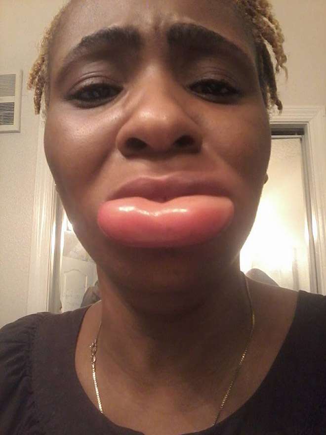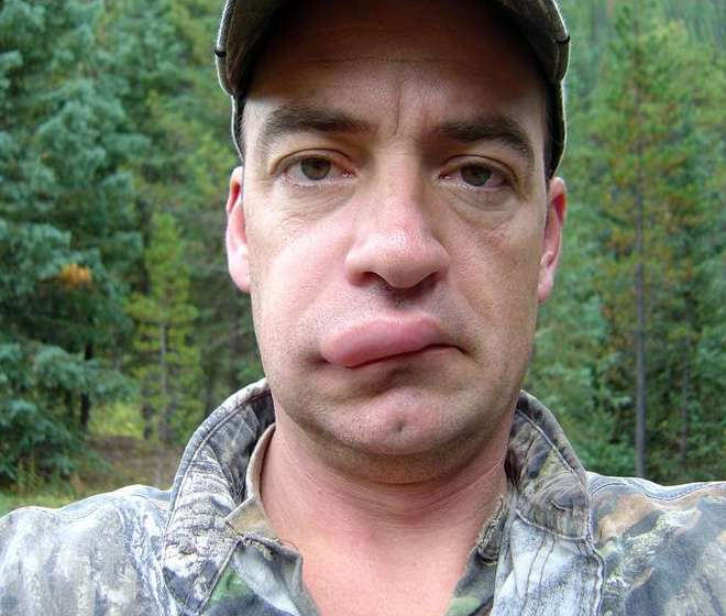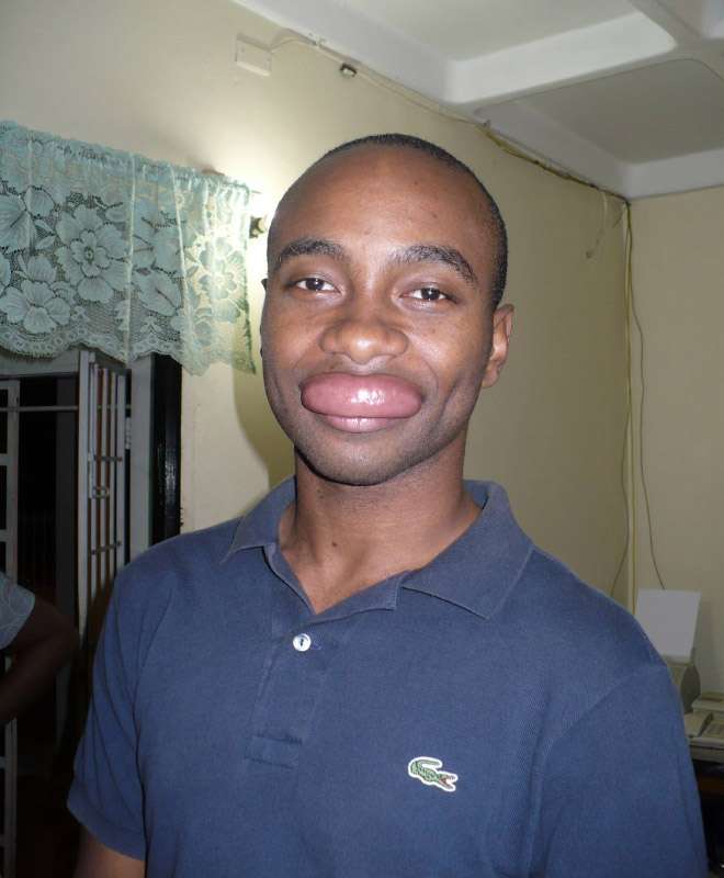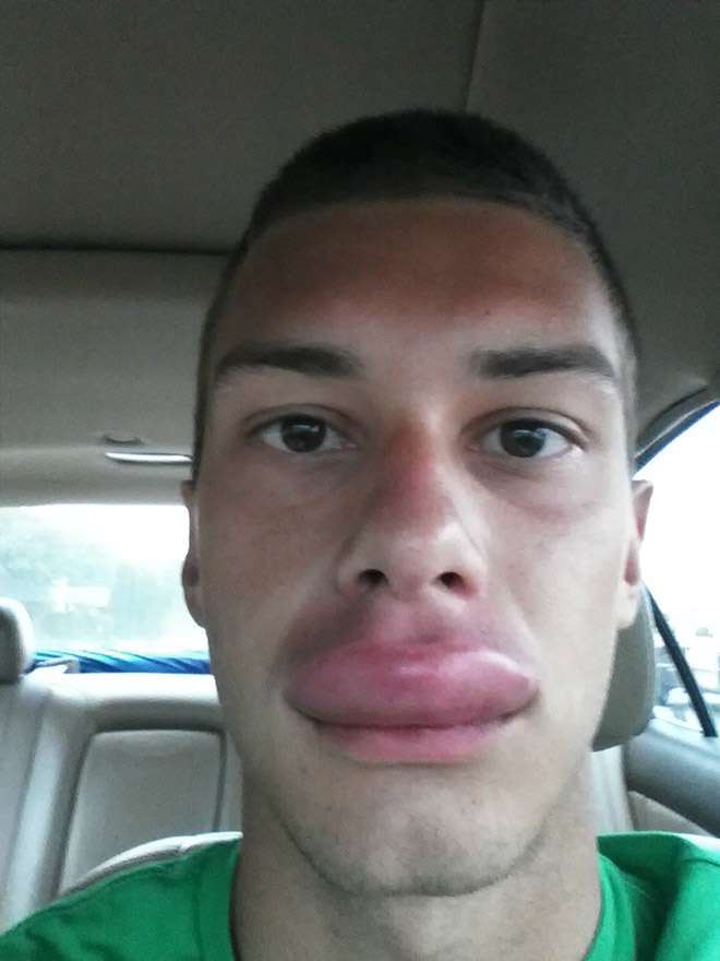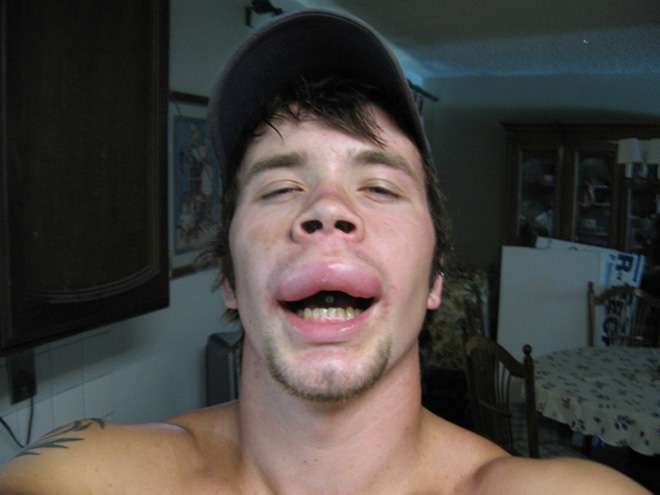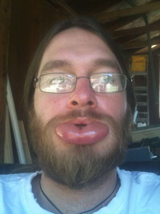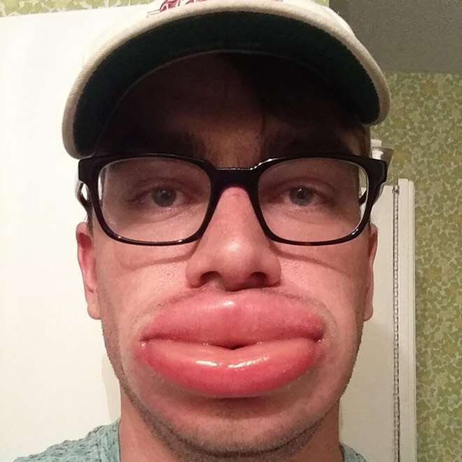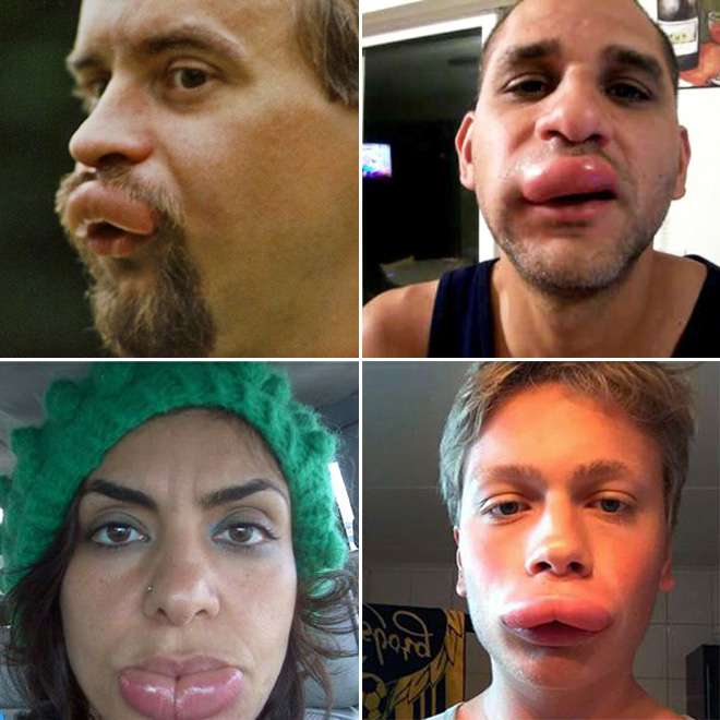 Oheisissa kuvissa poseeraa ihmisiä, joiden huuleen on pistänyt ampiainen. Kuvat ovat erittäin kivuliaan näköisiä ja ihmettelen miten joiden henkilöiden huulet eivät ole räjähtäneet.