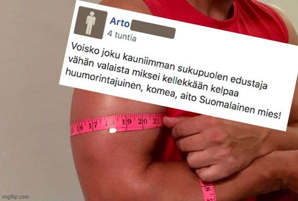 Arto on ihmetellyt miksi hän ei saa naista, vaikka hänen hauiksen ympärysmitta on 42 senttimetriä ja hän tienaa yli 2000 euroa kuukaudessa. En usko, että naiset kiinnittävät ensimmäisenä huomiota palkan tai hauiksen kokoon… Lisäksi tapa, jolla Arto puhuu naisista (kutsuu horoiksi) ei todellakaan edistä asiaa.