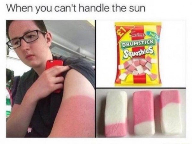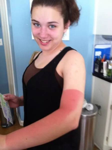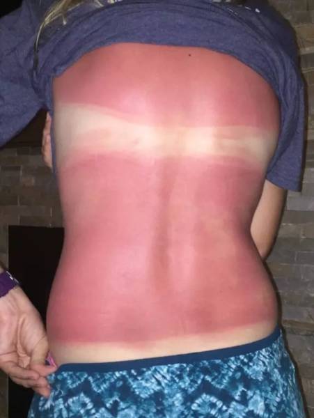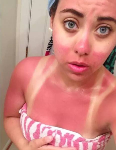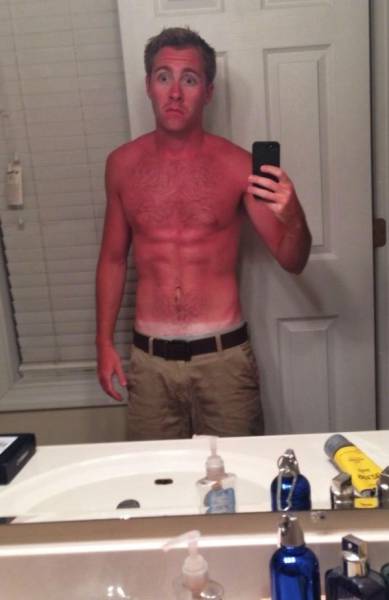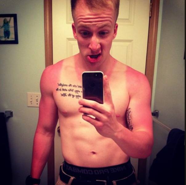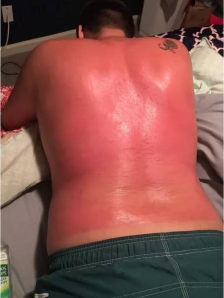 Moni meistä on saattanut nukahtaa aurinkotuoliin ja muutaman tunnin jälkeen peilissä on ollut vastassa aivan erilaisen näköinen henkilö. Joskus taas palamista ei edes huomaa, kun liikkuu ulkona ystävien kanssa. Auringossa palaminen näyttää huvittavalta, mutta se voi aiheuttaa suurta kipua, kuumeilua ja pahoinvointia. Palaminen nostaa myös ihosyövän riskiä, joten suosittelemme käyttämään reilusti aurinkorasvaa. Alla olevissa kuvissa näemme kuvia henkilöistä, jotka saivat auringolta todellisen selkäsaunan.1.