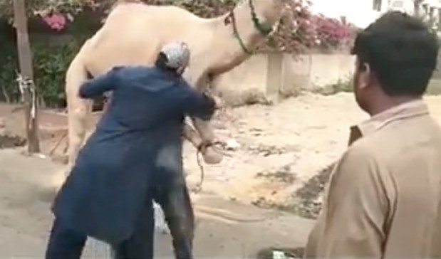 Mies yrittää teurastaa sidotun kamelin tylsällä veitsellä – saa ansaitsemansa opetuksen