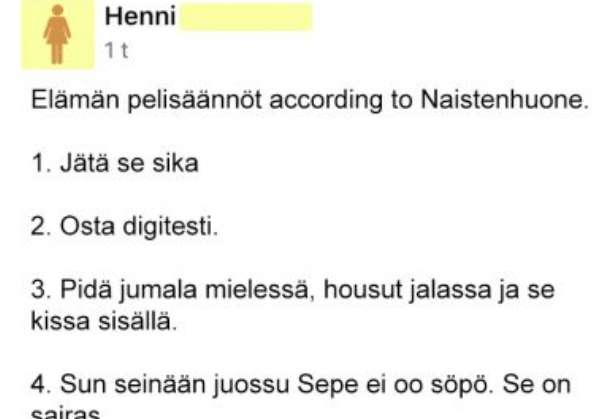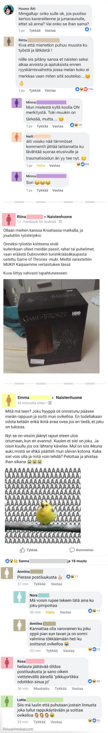 Feissarimokat: naistenhuoneessa pohdittiin: ”otetaanko tamponi pois ruumiista?”
