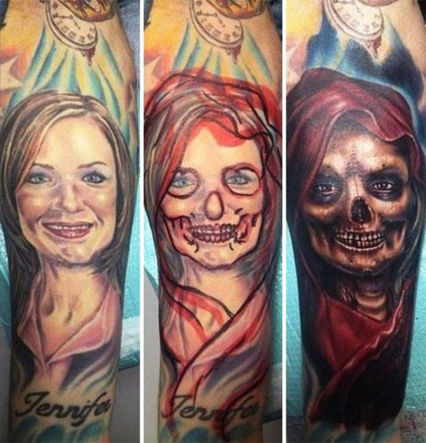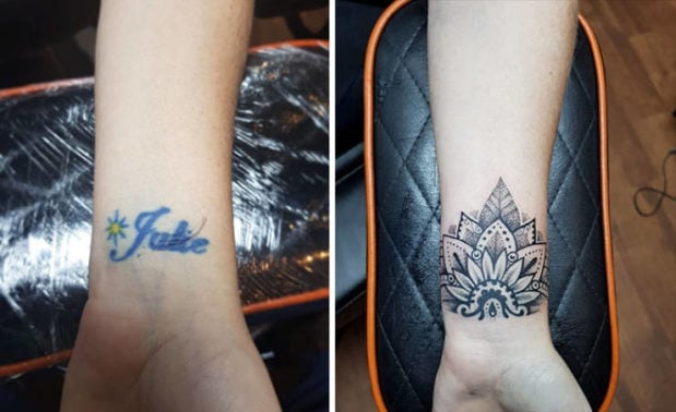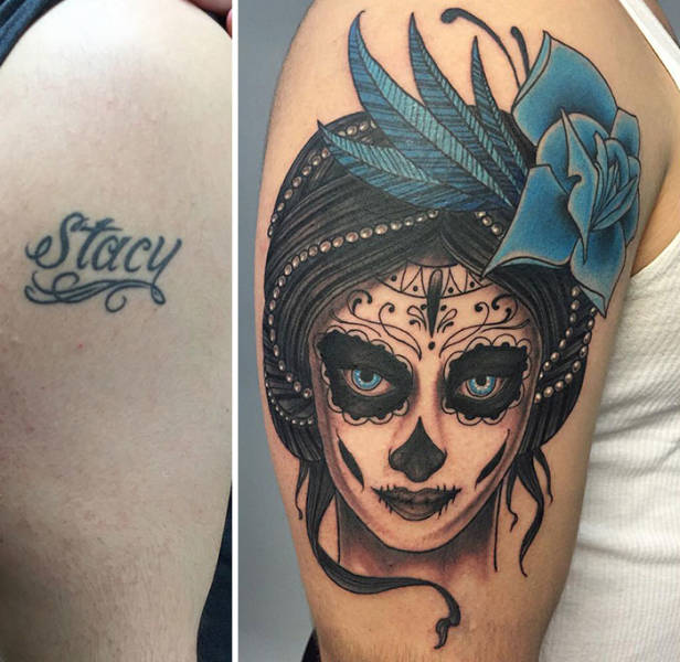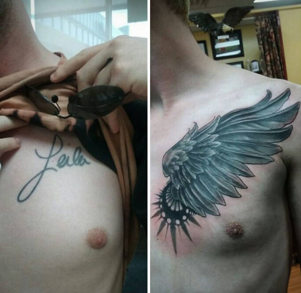 Voit katsoa oheisista kuvista, kuinka vilkas mielikuvitus tatuoijilla saa olla, kun he joutuvat peittämään muistoja ex-puolisoista.