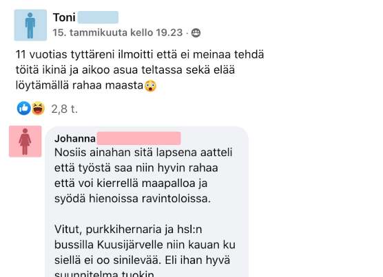 Feissarimokat: 11-vuotias tyttö kertoi isälleen, ettei hän aio tehdä töitä koskaan