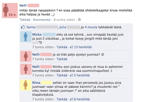 14-vuotiaiden ei kuulu keskustella alkoholista avoimesti Facebookissa. Moni päätyy kuitenkin kokeilemaan alkoholia alaikäisenä, vaikka sen vaikutukset ovat haitaksi aivojen kehitykselle.