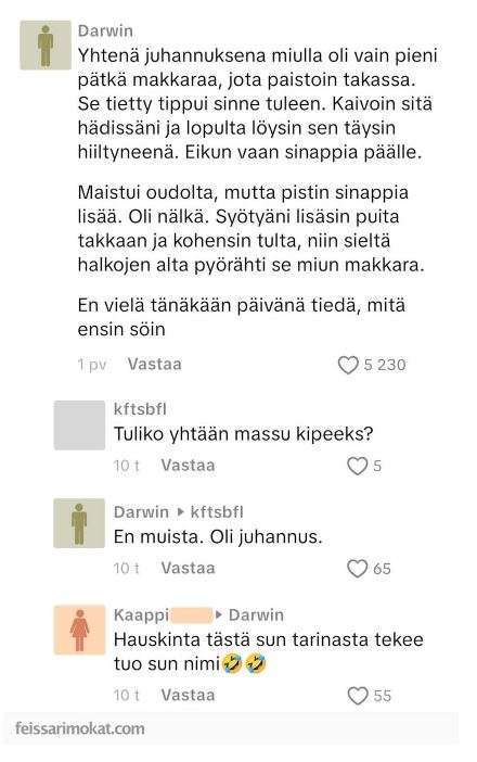 - Darwin pudotti makkaransa – sen jälkeinen reaktio naurattaa facessa