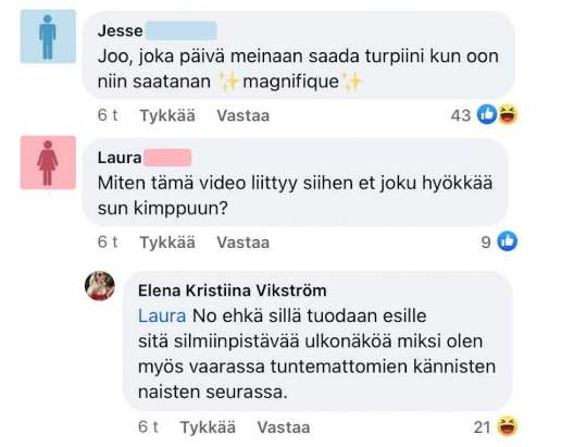 Elena Vikström kertoi joutuneensa hyökkäyksen kohteeksi, koska hän on niin kaunis.