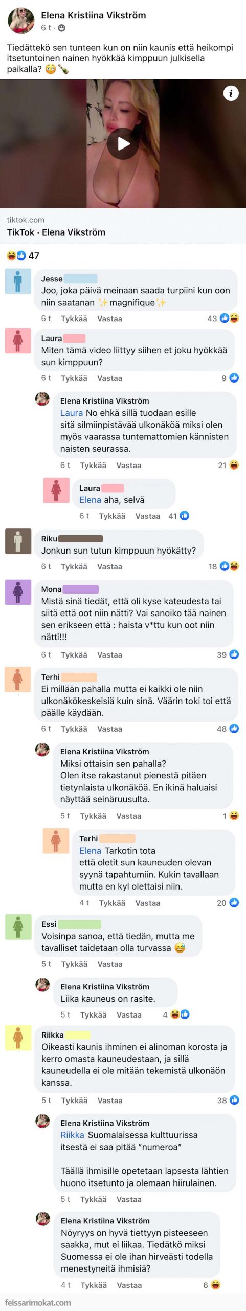 Feissarimokat: Elena Vikström – ”En ikinä haluaisi näyttää seinäruusulta”