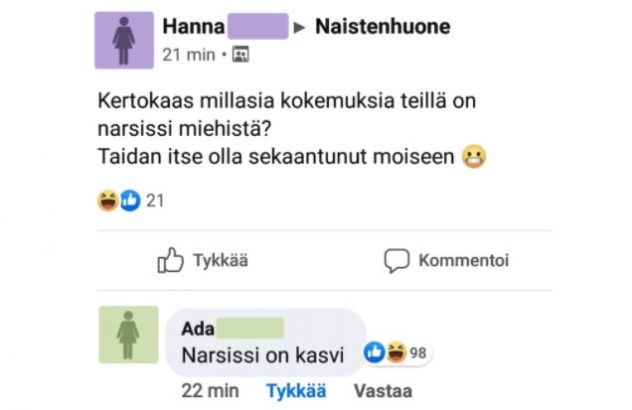 Feissarimokat: Hanna kysyy millaisia kokemuksia muilla naisilla on ”narsissi miehistä”