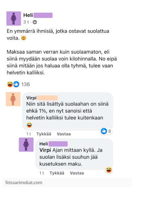 Feissarimokat: Heli ei ymmärrä ihmisiä, jotka ostavat suolattua voita – ”tulee helvetin kalliiksi”
