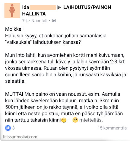 Jaa artikkeli Facebookissa ja toivota kaikille voimia painonpudotukseen!