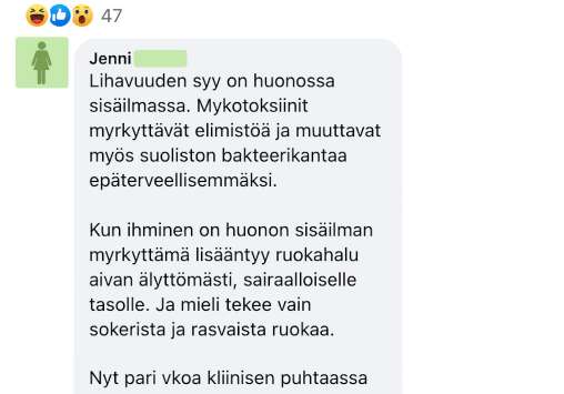 Eräällä suomalaisnaisella näyttäisi olevan kuitenkin ongelmiin ratkaisu, sillä hänen mukaansa ilmassa on leijuu myrkkyjä, jotka muuttavat suoliston bakteerikantaa epäterveelliseksi.
