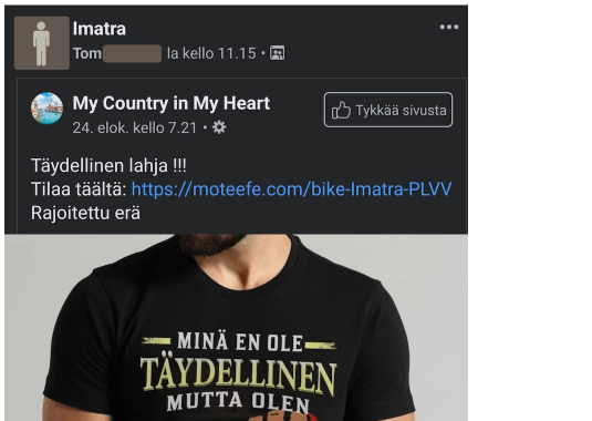 Feissarimokat: Imatralainen paita kuumensi tunteita somessa – ”en ole täydellinen mutta oon Imatralta”