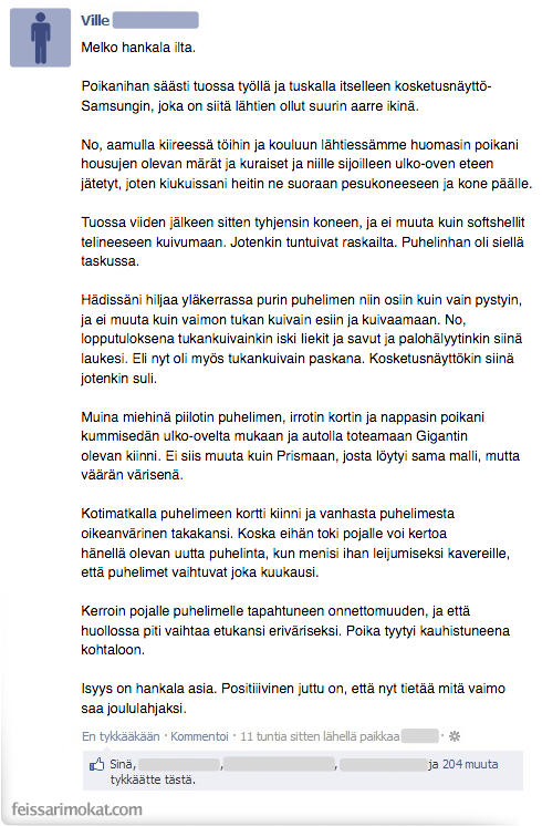 Feissarimokat: Isä laittoi poikansa housut pesukoneeseen – unohti tarkistaa taskut