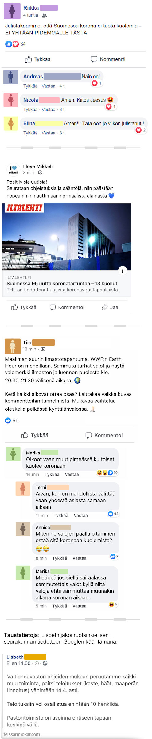 Feissarimokat.com kokosi yhteen keskusteluja, joita käytiin koronaan liittyen.