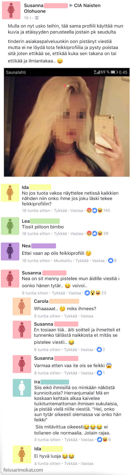 Feissarimokat: Joku käytti suomalaisnaisen valokuvaa – rintavako herätti kateutta