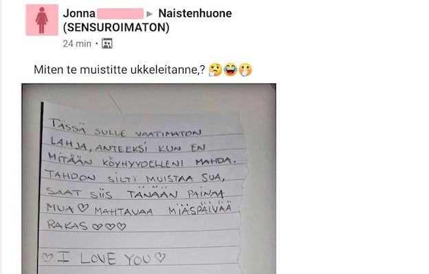 Feissarimokat: Jonnan kirje sai naiset vihaiseksi – ”ei lemmenleikeillä voi kiristää”