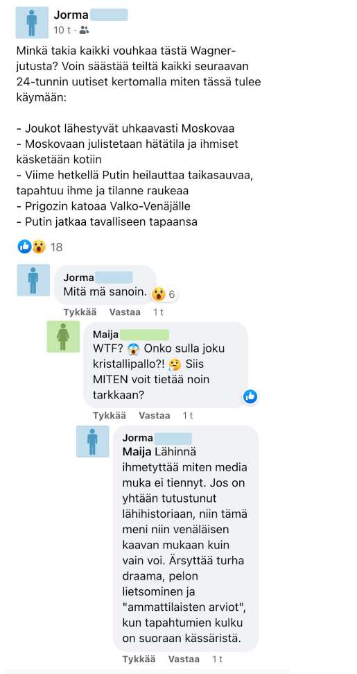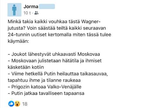 Feissarimokat: Jorma ennusti Wagner-joukkojen etenemisen hämmästyttävällä tarkkuudella