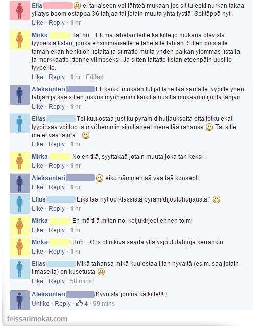 Feissarimokat: Joululahjojen pyramidihuijaus