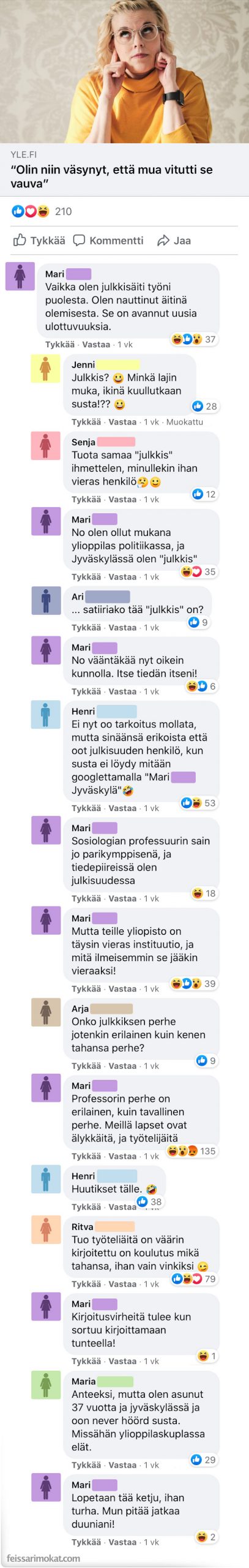 Lopulta Mari tarkensi, että hän on julkkis pelkissä yliopistopiireissä ja päätti samalla lopettaa keskustelun.