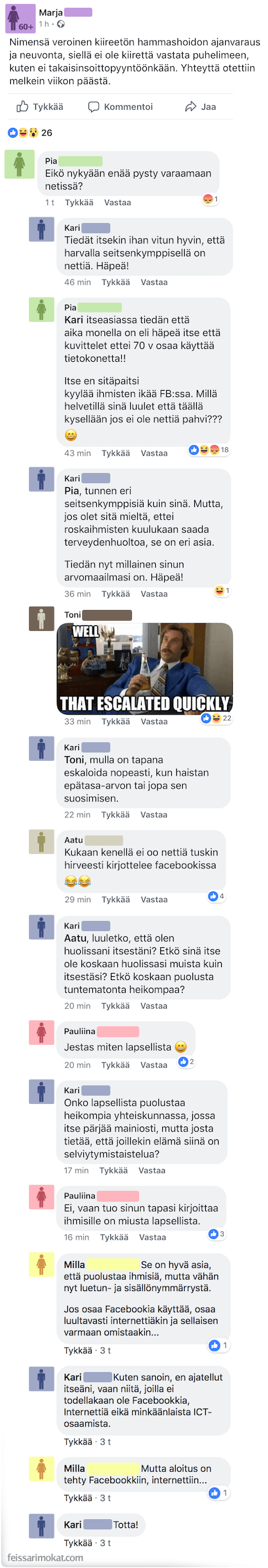 Feissarimokat: Kari kuvittelee ettei vanhuksilla ole nettiä – tätä voi kutsua ikärasismiksi