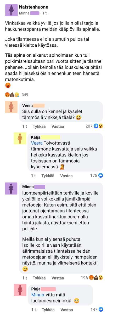 Naistenhuoneessa julkaistiin vinkkejä haukkuvan koiran rauhoittamiseen. Erikoisen tapauksesta teki se, että julkaisun kirjoittanut henkilö kasvattaa koiria tekstin perusteella todella kyseenalaisin keinoin.