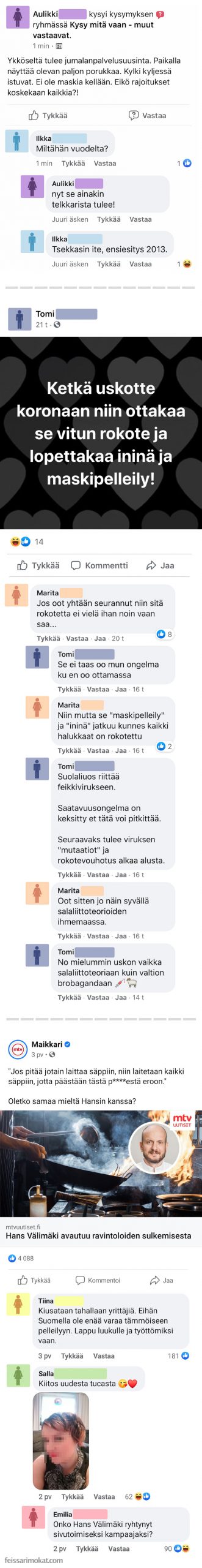 Feissarimokat.com kokosi parhaita paloja koronaan liittyvästä keskustelusta. Istu hetki alas ja nauti erikoisesta viihteestä.