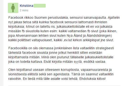 Feissarimokat: Kristiina on joutunut valtaeliitin mustalle listalle