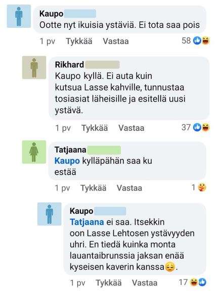 - Feissarimokat: Kun Lasse Lehtonen ryhtyy kaveriksesi, tilanne on vain hyväksyttävä.