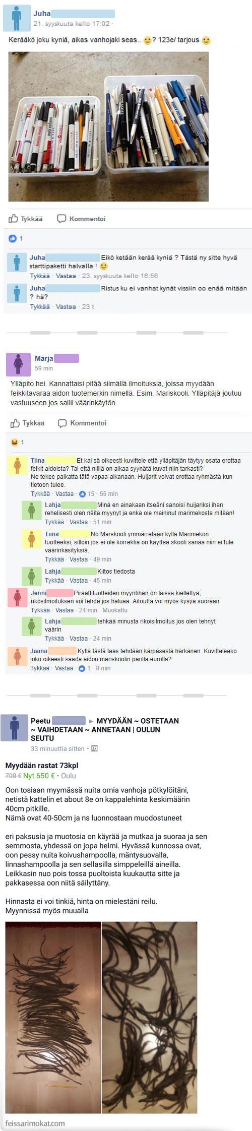 Feissarimokat: kyniä ja rastoja myynnissä kovalla hinnalla – meinasi alkaa naurattamaan