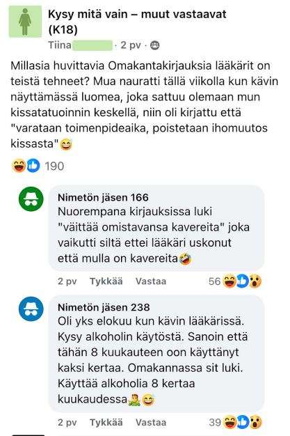 - Feissarimokat: Lääkärien parhaat omakantakirjaukset – lue, jos haluat hyvät naurut
