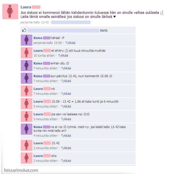 - Feissarimokat: Whatsapp + intiimi viesti + 30 ihmistä = mitä voi mennä pieleen?